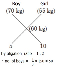 The mean weight of 150 students in a certain class is 60 kg. The mean weight of boys in the class is 70 kg and that of girls is 55 kg. What is the number of boys in the class?