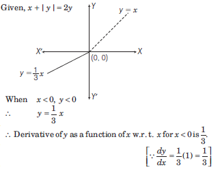 What is the derivative of y as a function of x with respect to x for x < 0 ?