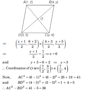Directions (3 Question) Consider a parallelogram whose vertices are A(1, 2), B(4, y), C(x, 6) and D(3, 5) taken in order.