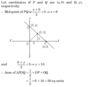 A straight line intersects x and y axes at P and Q, respectively. If (3, 5) is the middle point of PQ, then what is the area of the triangle OPQ?