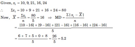 What is the mean deviation from the mean of the numbers 10, 9, 21, 16, 24?