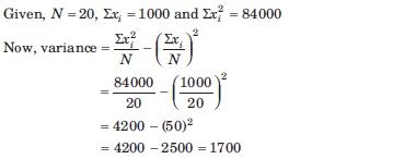 If the total number of observations is 20, xi = 1000 and xi2 = 84000, then what is the variance of the distribution?