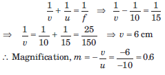 It is given that, Focal length of the convex lens, f = 15cm Distance of pencil from the pole, u = − 10 cm Applying mirror formula, we get
