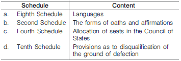 Which one of the following pairs of the Schedule in the Constitution of India and its content is not correctly matched?