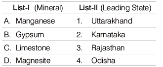 Uttarakhand has second largest deposit of magnesite (19%) af ter Tamil Nadu (74.1%). Karnataka has the largest lime stone reserves in India. Gypsum deposits about 90% located in Rajasthan, while Odisha has the largest deposits of Manganese.