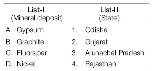 Match List I with List II and select the correct answer using the code given below the Lists :