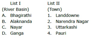 Match List-I with List-II and select the correct answer using the code given below the Lists :