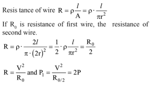 the wire A, causing power dissipation, P. the radius of wire B is 2r and its length is 2l and the same de voltage V is applied across it causing power dissipation P1. Which one of the following is the correct relationship between P and P1?
