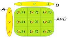 * The Cartesian Product of two sets A and B is the set { (a, b ) : a∈ A , b∈ B } and is denoted by A × B .