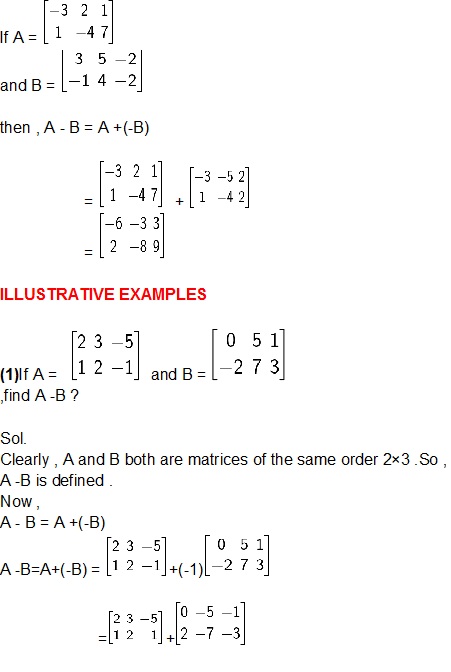 SUBTRACTION OF MATRICES