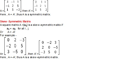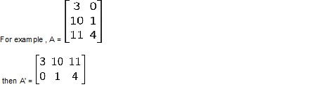 Let A = [ aij] be an m×n matrix .Then , the transpose of A , denoted by AT or A' , is an n×m matrix such that