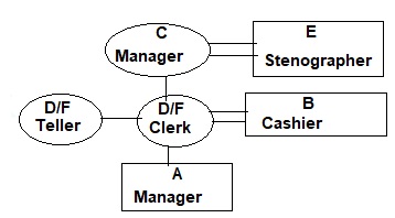 The staff of a bank are Mr A, Mr B, Mrs C, Miss D, Mr E and Miss F. The positions they occupy are manager, assistant manager, cashier, stenographer, teller and clerk, though not necessarily in that order. The assistant manager is the managers grandson, the cashier is the stenographers son-in-law. Mr A is a bachelor. Miss D is the tellers step sister and Mr E is the managers neighbour. Mr B cannot have a grandson or son-in-law as he is only 20 years old.