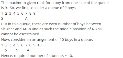 In a queue, Shikhar is 9th from the back. Arun’s place is 8th from the front. Nikhil is positioned at the middle of the two. What could be the minimum number of boys standing in the queue?