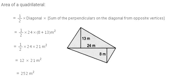 The diagonal of a quadrilateral shaped field is 24 m and the perpendiculars dropped on it from the remaining opposite vertices are 8 m and 13 m. Find the area of the field.