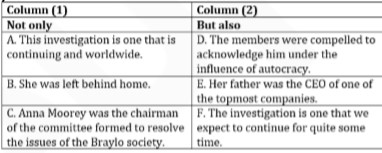 In the following question, two columns are given containing a connector and three phrases each. In the first column, the phrases are A, B and C and in the second column, the phrases are D, E and F. You have to make meaningful sentences using the connectors in the starting and from the phrases of both the columns. There are five options, four of which display the sequence(s) in which the phrases with the connectors can be joined to form a grammatically and contextually correct sentence. If none of the options given forms a correct sentence after combination, select ‘none of these’ as your answer.