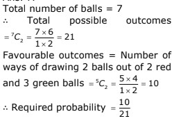 A bag contains 2 red 3 green and 2 blue balls. Two balls are drawn at random. What is the probability that none of the balls drawn is blue?