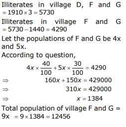 The average number of illiterates in Village D, F and G is 1910. 40% and 30% of the population of villages F and G respectively are illiterate. If the ratio of the population of Village F and G is 4 : 5 respectively, what is the total population of Villages F and G together ?