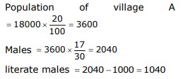 Refer to the pie charts to answer the given questions. Data regarding villages – A, B, C, D and E- in a district – in 2015 Total village population = 18000