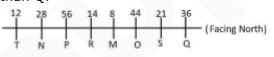 Read the given information carefully and answer the questions given below: Eight people M, N, O, P, Q, R, S and T are sitting in a straight line facing north direction. They all have different ages, viz. 8, 12, 14, 21, 28, 36, 44 and 56 but not necessarily in the same order. Two people are sitting between O and the one whose age is 56 years. The one whose age is 14 years is sitting second to the left of O. N is sitting to the immediate left of the one whose age is 56 years. One person is sitting between T and the one whose age is 56 years. Either T or the one whose age is 56 years is sitting at the extreme end. The one who is 56 years old is not sitting to the left of T. There is a difference of 7 years between the ages of R and S and two people are sitting between them. The one whose age is 12 years is sitting second to the left of P. P is not sitting at the extreme end. There is one people sitting between R and the one whose age is 44 years. M is an immediate neighbor of the one whose age is 44 years. Q and the one whose age is 21 years are immediate neighbors. T is older than M and N is younger than Q.