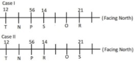 People: M, N, O, P, Q, R, S and T. Ages: 8, 12, 14, 21, 28, 36, 44 and 56. 1) Either T or the one whose age is 56 years is sitting at the extreme end. The one who is 56 years old is not sitting to the left of T. 2) One person is sitting between T and the one whose age is 56 years. 3) Two people are sitting between O and the one whose age is 56 years. 4) The one whose age is 14 years is sitting second to the left of O. 5) N is sitting to the immediate left of the one whose age is 56 years. (Hence, there will be two possible cases) 6) There is a difference of 6 years between the ages of R and S and two people are sitting between them. (The condition which satisfies the age difference of 6 years is only 14 & 21 and the position of the one who is 14 years old is fixed and it is also given that either R or S is 14 or 21 years old. Hence, case II will be eliminated as T cannot be 21 years old). (Further from case I, there will be another two possible cases)