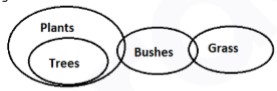 The least possible Venn diagram for the given statements is as follows: I. No Plants are Grass → It’s a doubtful case, so its false. II. All Bushes can be Grass → It’s not possible, because only a few bushes are grass that means all is not possible, hence false. Thus, neither conclusion I nor conclusion II follows.