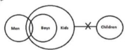 Conclusions: I. Some men are not children – Its sure. Hence, true. II. Some men are not boys – Its sure. Because it is given in the statement that only a few Men are boys, hence true. Hence, both conclusions I and II follow. 12. Ans. B. The least possible Venn diagram for the given statements is as follows: