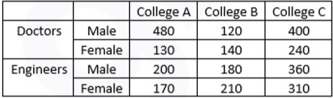 College C: Male engineers is 1.5 times the number of female doctors. Sum of the number of female doctors and female engineers is 550. Number of female engineers is 70 more than the number of female doctors. Total number of male doctors and male engineers is 760.
