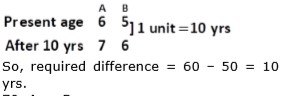 Ratio of present ages of A and B is 6:5. After 10 years, the ratio of their ages will be 7:6. Find the difference in their present ages?