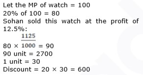 A shopkeeper sold a wrist watch at 20% discount to Sohan and Sohan sold this watch at the profit of 12.5% profit for Rs. 2700, Then find the discount.