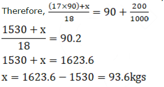 The average weight of 17 students is 90 kg. If the weight of the teacher is also included, then the average weight is increased by 200 grams. Find the weight of the teacher?