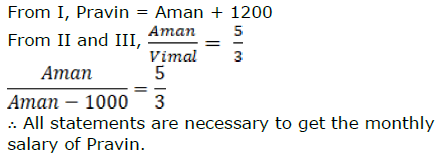 III. Vimal earns Rs. 1,000 less than Aman.