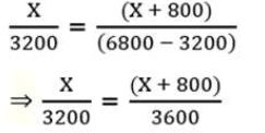 ⇒ 9X = 8(X + 800) ⇒ X = 8 × 800 = 6400
