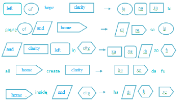 ‘all home create clarity’ is written as ‘ka re da fu’.