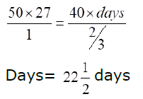 If 50 men can complete a project in 27 days. How many days will be required to complete Two-third of the project by 40 men?