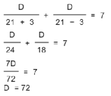 Speed of boat in still water is 21 kmph & speed of current is 3 kmph. The boat completes round trip from A to B & then back to A in 7 hrs. Find the distance between A & B.