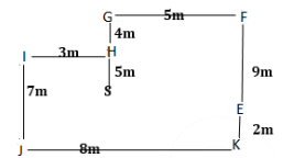 S will be west of E and south of H. The distance between S & H will be 5 m.