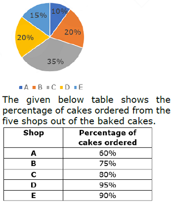 Direction: Study the given information carefully and answer the questions that follow. The given below graph shows the percentage distribution of the number of cakes baked by 5 shops (A, B, C, D and E) on a given day. Total number of cakes baked by the 5 shops were 400.