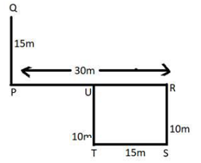 Direction: Study the following information and answer the given questions. Point P is 15 m South of point Q. Point R is 30 m East of point P. Point S is 10 m South of point R. Point S is 15 m East of point T and point U is 10 m North of point T.