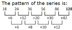 18, 24, 36, 56, 86,?