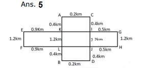 Study the following information to answer the given questions. A, B, C and D are the corners of a rectangular field such that A is to the North of B. C is 0.2km to the East of A. The longer side of the rectangular field is 2km. E, F, G and H are the corners of an another rectangular field such that E is 1.6km to the west of G. H is 1.2km to the south of G and in the East of F. Rectangle field EFGH intersects the line joining AB and CD at KL and IJ respectively. It is also known that K is 0.9km towards the East of E and J is 0.4km towards the North of D.