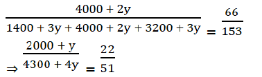 ⇒ y = 200 So now the total investment = (800 + 3x + 3y) + (1600 + 12x + 2y) + (2000 + 6x + 3y) = (4400 + 21x + 8y) After putting x = 200 and y = 200, total investment = Rs 10,200