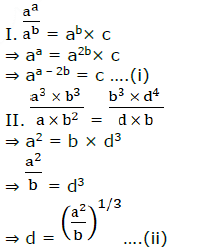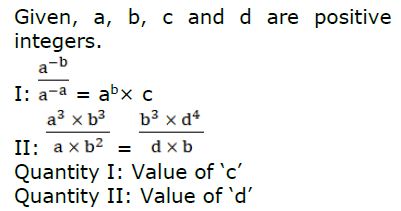 Now, assuming different values of ‘a’ and ‘b’ to get value of ‘c’ and ‘d’. If a = 1 and b = 1 Then, c = 1 and d = 1 i.e., c = d If a = 4 and b = 2 Then, c = 1 and d = 2 i.e., c < d If a = 9 and b = 3 Then, c = 729 and d = 3