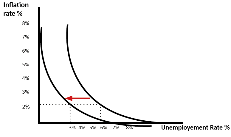 However, Keynesians argue that demand deficient unemployment could persist in the long-term. If there is a significant negative output gap, boosting AD could lead to lower unemployment and a modest increase in inflation. In a deep recession, this fall in unemployment will not just be temporary because there will be no crowding out. In an ideal wopolicymakersakers will aim for low inflation and low unemployment. To achieve this, we need economic growth that is sustainable (close to long-run trend rate) and supply-side policies to reduce cost-push inflation and structural unemployment. If these criteria are met then it becomes easier to achieve this goal of lower inflation and lower unemployment.