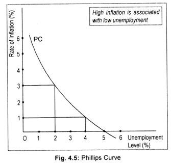 This Phillips curve relation poses a dilemma to the policymakers. If the objective of price stability is to be attained, the country must accept a high unemployment rate, or if the country designs to reduce unemployment, it will have to sacrifice the objective of price stability.
