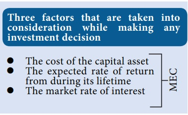 As a matter of fact, the MEC is the expected rate of return over cost of a new capital asset. In order to find out whether it is worthwhile to purchase a capital asset it is essential to compare the present value of the capital asset with its cost or supply price. If the present value of a capital asset exceeds its cost of buying, it pays to buy it. On the contrary, if its present value is less than its cost, it is not worthwhile investing in this capital asset.
