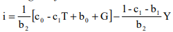 If we assume that C = c0 + c1 (Y-T) and I = b0 + b1Y – b2i, then aggregate demand is given by Z = c0 + c1(Y-T) + b0 + b1Y – b2i + G. In equilibrium Z = Y. Solving for Y in equilibrium, we get