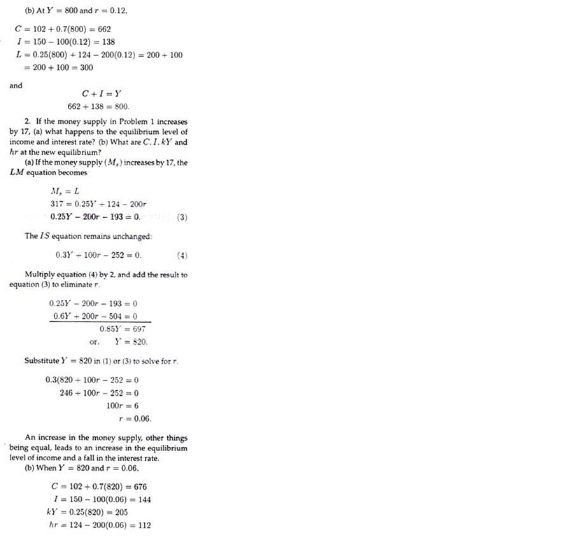 Solution, (a) Commodity market equilibrium (IS) exists where