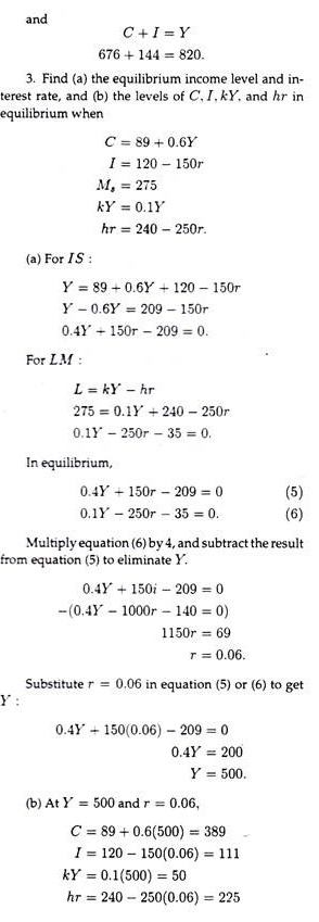 Find; (a) the equilibrium level of income and the equilibrium rate of interest, and (b) the level of C, I, and L when the economy is in equilibrium.