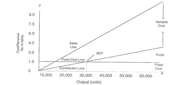 (iv) Profits and fixed costs are plotted for corresponding sales volume and the points are joined by a line which is the profit line.