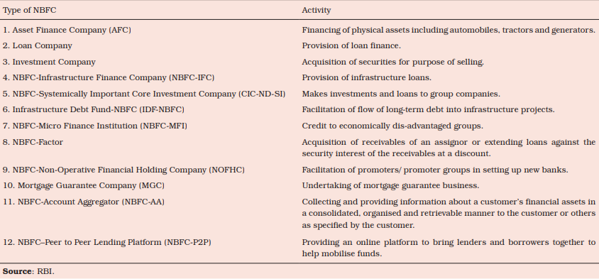 NBFCs are classified on the basis of their liability structures, the type of activities they undertake and their systemic importance.
